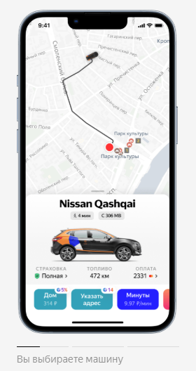 Мобильное приложение Яндекс Драйв – это центр управления арендой. С его помощью можно найти машину, открыть её без ключей и завершить аренду в пару кликов.